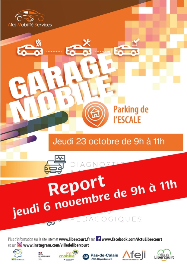 Le Garage Solidaire AFEJI arrive dans notre ville le 6 novembre de 9h à 11h sur le parking situé à l'arrière de l'ESCALE. Une gamme complète de services vous seront proposés comme diagnostic du véhicule ou encore des ateliers pédagogiques
